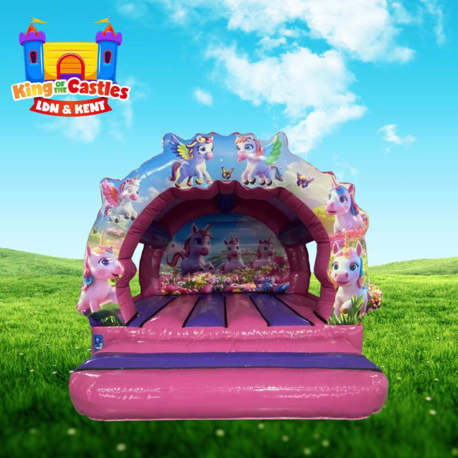 The Unicorn contour bouncy castle (13ft x 13ft) brings vibrant, 3D unicorn fun to any event. Bright colors and a sculpted unicorn head create instant wow factor. This inflatable unit is roomy, safe, and built for smiles. Perfect for birthdays, school fêtes, family gatherings, and themed parties. โจ